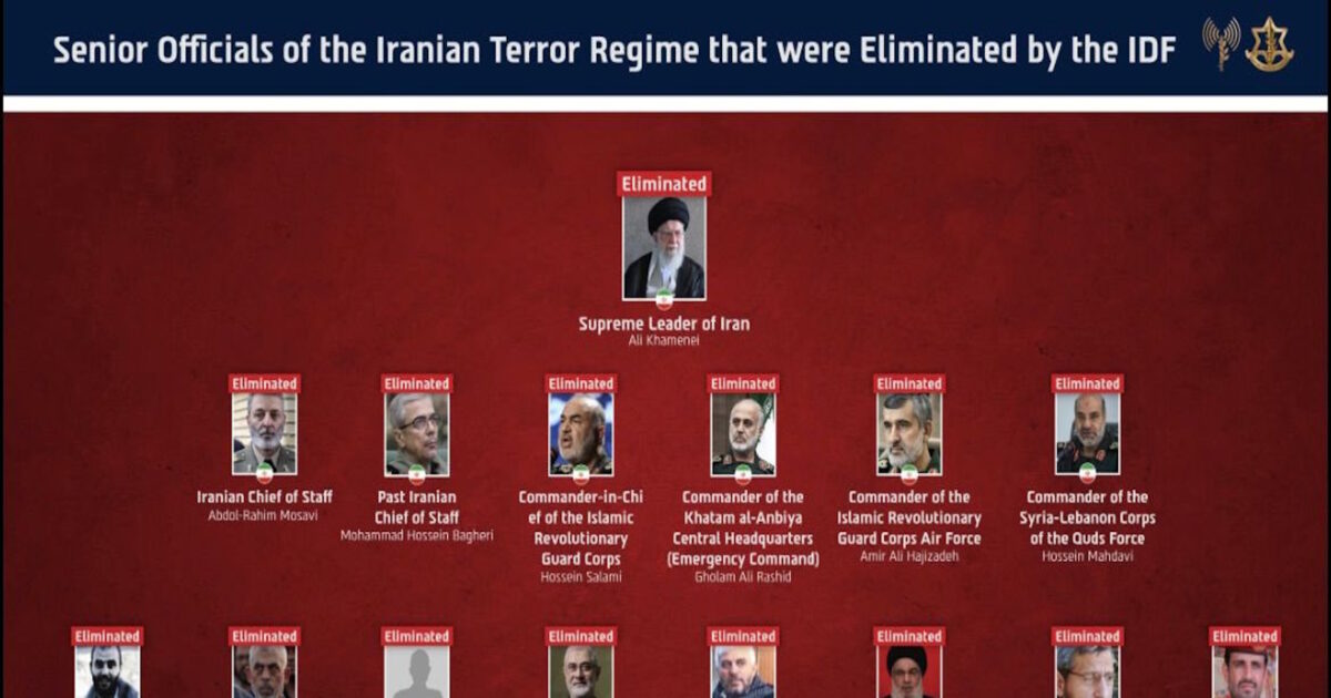 Με μια ανάρτηση στα social media, οι στρατιωτικές δυνάμεις του Ισραήλ αποτυπώνουν το μέγεθος της καταστροφής που έχουν προκαλέσει στην στρατιωτική και πολιτική ηγεσία του Ιράν, αλλά και στις συμμαχικές τους δυνάμεις και στους «δορυφόρους» τους στην Μέση Ανατολή.
