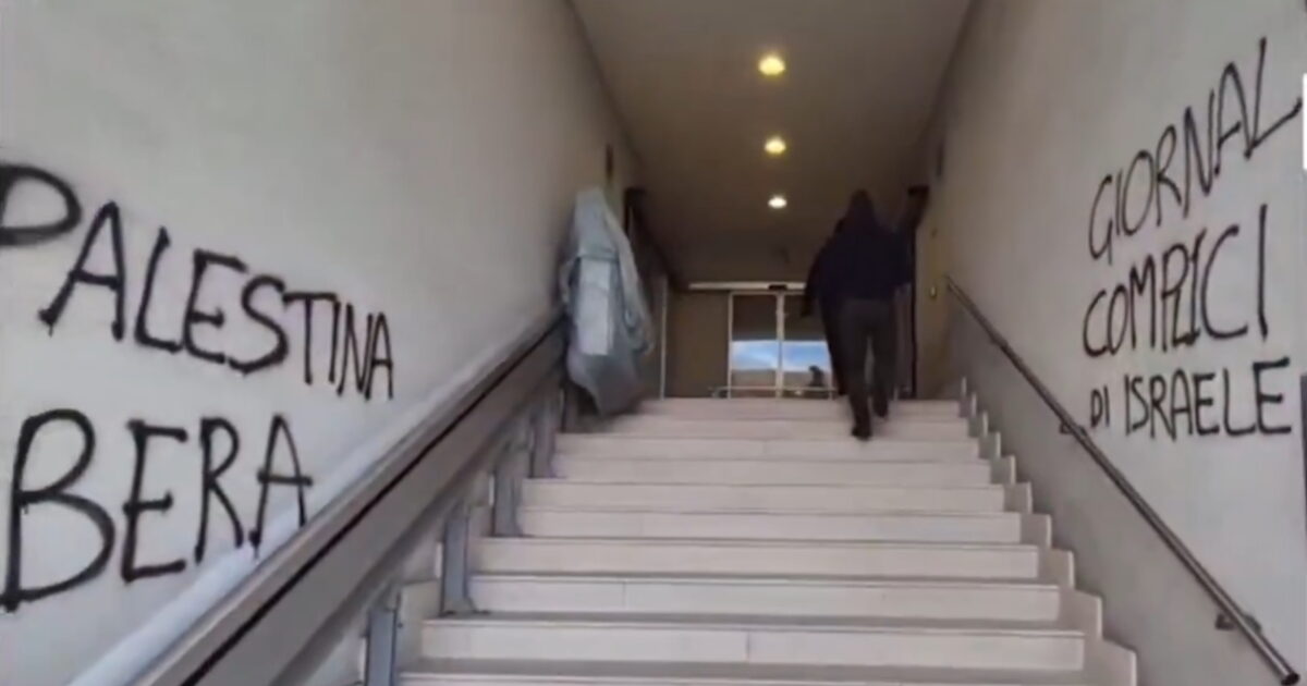 Un gruppo di militanti pro Palestina oggi ha fatto irruzione nella redazione de @LaStampa vandalizzando e scrivendo scritte sui muri. Una cosa gravissima e pericolosa.