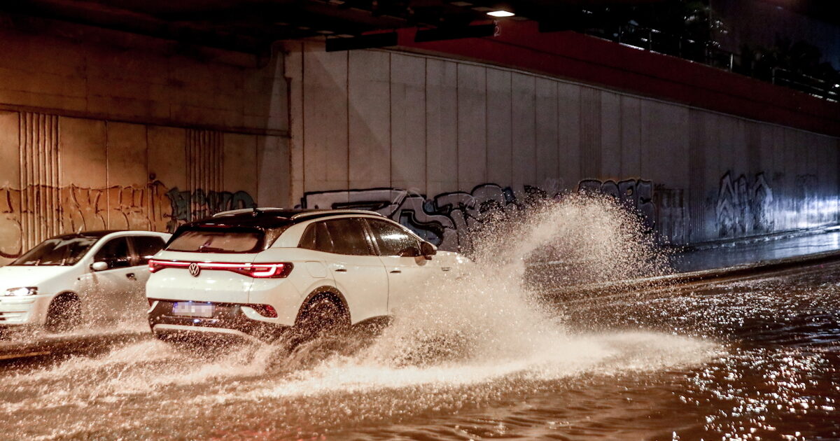 - Μείνετε μέσα και ανάψτε τα προειδοποιητικά φώτα στάσης (φώτα έκτακτης ανάγκης) μέχρι να κοπάσει η καταιγίδα.
