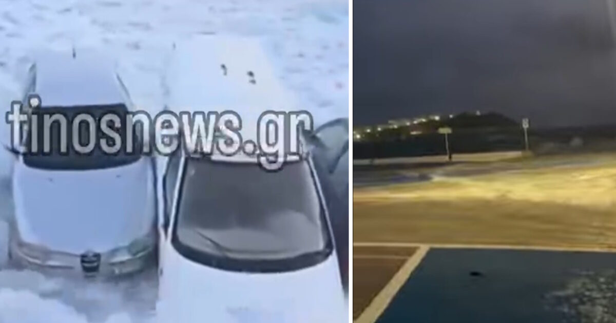 Σοβαρά προβλήματα προκάλεσε η έντονη κακοκαιρία και στην Τήνο το Σάββατο (10.01.2026). Ισχυρά κύματα εισέβαλαν στον χώρο στάθμευσης του λιμανιού και παρέσυραν σταθμευμένα αυτοκίνητα.