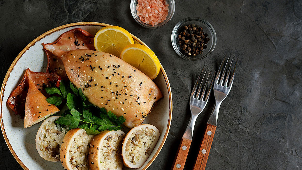 Το αποτέλεσμα είναι ζουμερά καλαμάρια με αρωματική, πλούσια γέμιση, ιδανικά για να συνοδεύσεις με φρέσκο ψωμί ή ένα δροσερό λευκό κρασί.