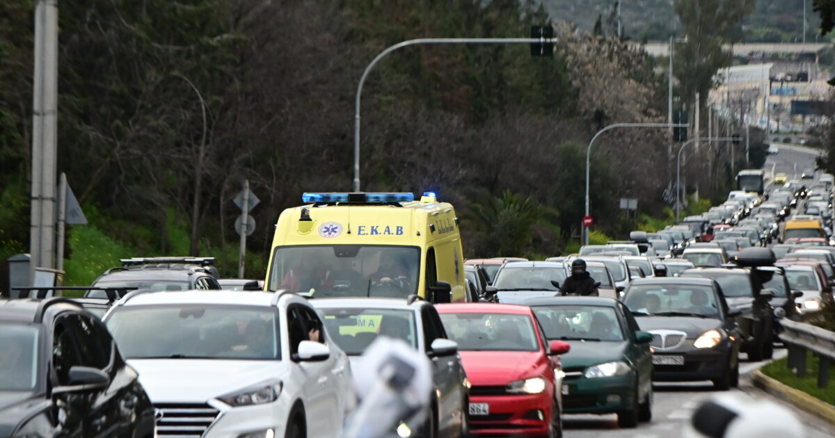 Ασθενοφόρα του ΕΚΑΒ έσπευσαν στον Κηφισό για να παραλάβουν τους τραυματίες.