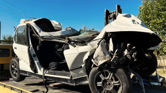 Η πρόσκρουσή ήταν σφοδρότατη και η εικόνα το μαρτυρά. Το αυτοκίνητο έγινε μια άμορφη μάζα.