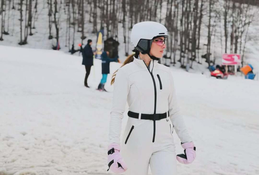 Στις φωτογραφίες, η Κατερίνα Δαλάκα ποζάρει ντυμένη με λευκή ολόσωμη στολή του σκι, κράνος και γυαλιά, δείχνοντας απόλυτα εξοικειωμένη με το χειμερινό σπορ. Άλλες λήψεις τη δείχνουν μέσα στο χιόνι, πάνω στα πέδιλα, αλλά και σε πιο χαλαρές στιγμές, αποτυπώνοντας την αίσθηση μιας μικρής απόδρασης μακριά από την καθημερινότητα.