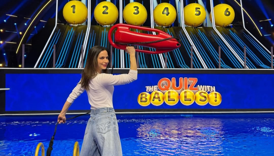 Η Κατερίνα πόζαρε όλο νάζι στο εντυπωσιακό πλατό του παιχνιδιού που έχει και πισίνα με νερό και όπως οι σταρ του Βaywatch (αλλά με τα ρούχα της όχι μαγιό) σήκωσε ψηλά το κόκκινο σωσίβιο των ναυαγοσωστών.