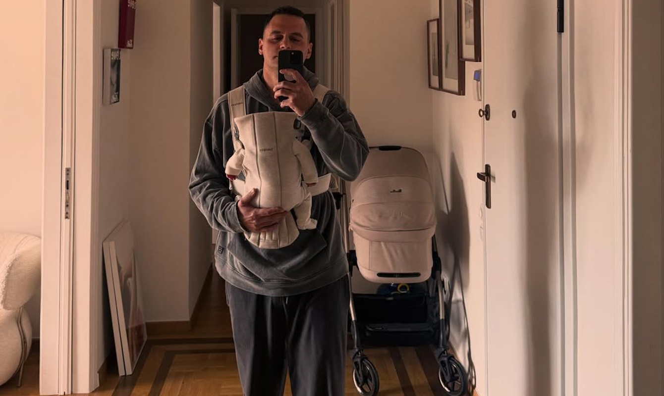 Ο επιχειρηματίας ανέβασε μία selfie με το μωράκι τους, το οποίο ήταν στον μάρσιπο, τον οποίο κρατούσε στοργικά.