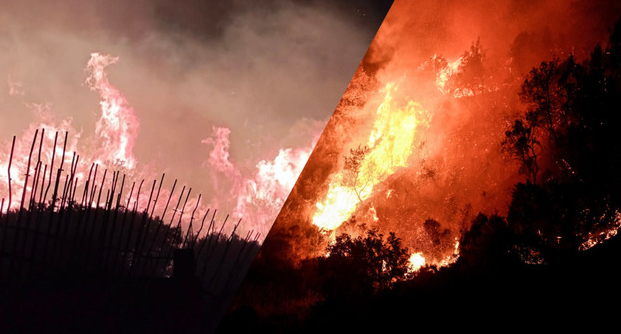 Ισχυροί άνεμοι επεκτείνουν γρήγορα το μέτωπο με τις φλόγες να γλύφουν τις περιφράξεις σπιτιών.