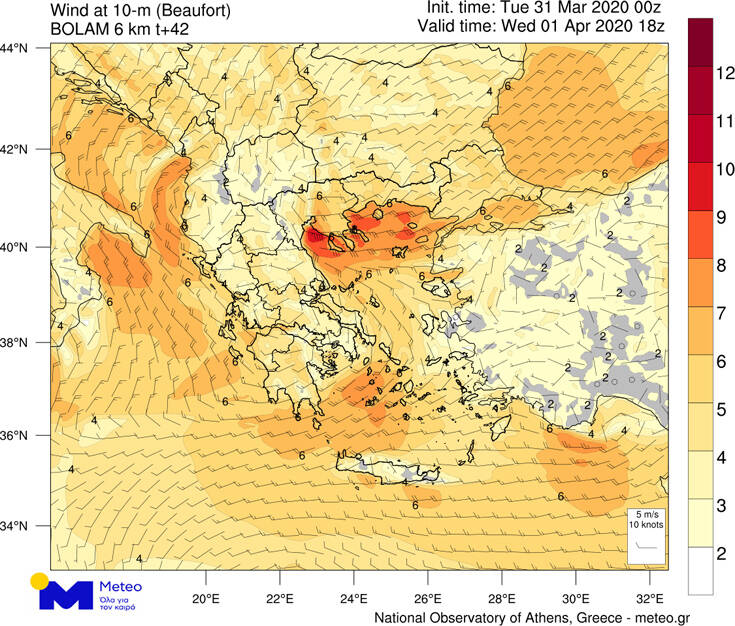 Παράλληλα, θυελλώδεις θα πνέουν οι βόρειοι άνεμοι στο Αιγαίο, από τις απογευματινές ώρες της Τετάρτης 01/04 στο Βόρειο Αιγαίο και κατά τη διάρκεια των πρωινών και μεσημερινανών ωρών της Πέμπτης 02/04 και στο Κεντρικό Αιγαίο,  όπου η έντασή τους θα φτάνει τα 8 μποφόρ.