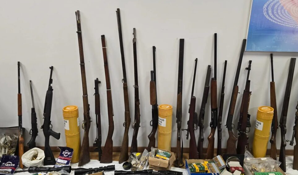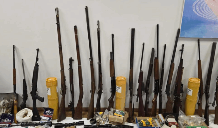 Κατά τη διάρκεια μεγάλης αστυνομικής επιχείρησης της Διεύθυνσης Αντιμετώπισης Οργανωμένου Εγκλήματος στο Κιάτο, εντοπίστηκαν στο σπίτι του απόστρατου, περισσότερα από 170 όπλα και 15.500 φυσίγγια.