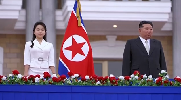 Στο πλάι του προέδρου ήταν η κόρη του και για πολλούς διάδοχός του, Κιμ Τζου Άε, και λίγο πιο πίσω η σύζυγός του, Ρι Σολ Τζου.