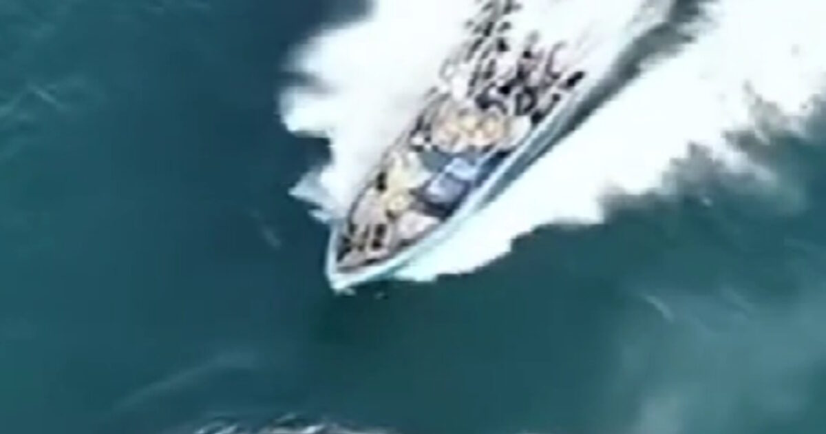 Λίγα δευτερόλεπτα αργότερα, ένα αλιευτικό σκάφος φαίνεται να διασχίζει την περιοχή χωρίς να επιβραδύνει, περνώντας ακριβώς πάνω από την πλάτη της φάλαινας.