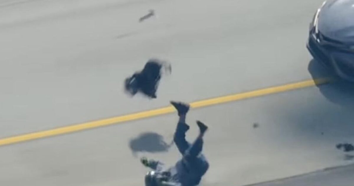 Στα πλάνα φαίνεται ο άνδρας να φτιάχνει το σακίδιο στην πλάτη του, έχοντας βγάλει τα χέρια από το τιμόνι του. Τότε βρήκε την ευκαιρία ο αστυνομικός εκτός υπηρεσίας και εμβόλισε την μηχανή. Ο δράστης εκτοξεύτηκε στον αέρα και σύρθηκε για αρκετά μέτρα. Εν τέλει τον πλάκωσε και η μηχανή του.