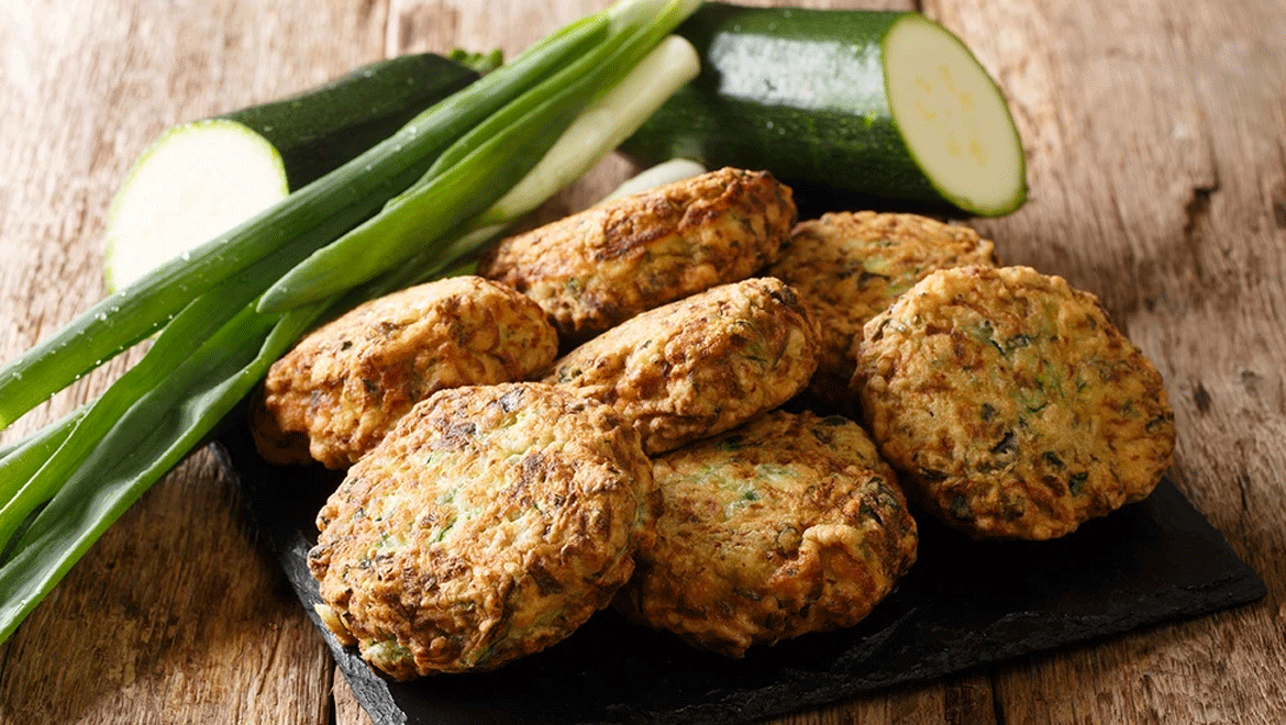 Υλικά 2 κολοκυθάκια, μέτρια 2 φρέσκα κρεμμυδάκια Λίγο μαϊντανό και λίγο άνηθο 1 αυγό 4- 5 κ. σ. αλεύρι για όλες τις χρήσεις 1 κ. γλ. μπέικιν πάουντερ 50 γρ. γραβιέρα τριμμένη 80 γρ. φέτα Λίγο μαυροπίπερο Εκτέλεση Προθερμάνετε το φούρνο στους 180 βαθμούς. Τρίψτε τα κολοκυθάκια, τοποθετήστε τα σε ένα σουρωτήρι, αλατίστε και αφήστε […]