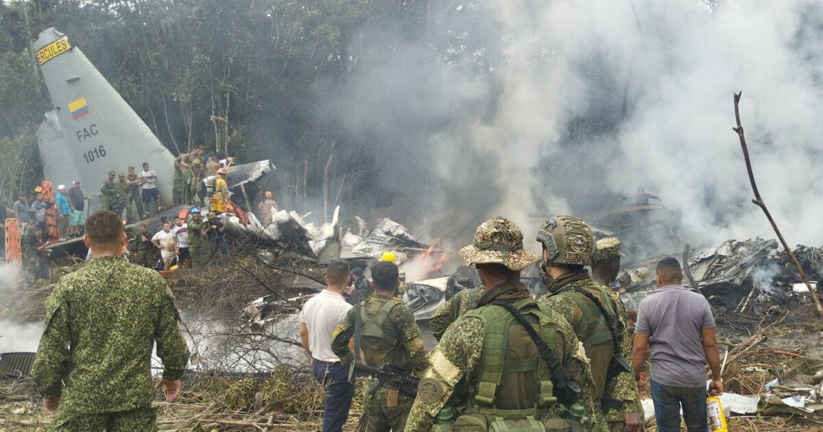 Accidente aéreo de un avión Hércules de la Fuerza Aérea en Puerto Leguízamo, Putumayo. Información preliminar indica que iban al menos 110 soldados. Por ahora, es incierto el número de personas fallecidas. pic.twitter.com/deoPez1rAu