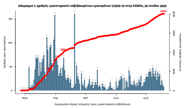 Τα στοιχεία που παρουσιάζονται αφορούν περιστατικά από την επιδημιολογική επιτήρηση της νόσου από το νέο κορωνοϊό (COVID19), με βάση τα δεδομένα που έχουν δηλωθεί στον ΕΟΔΥ και καταγραφεί μέχρι τις 21 Ιουλίου 2020 (ώρα 15:00).