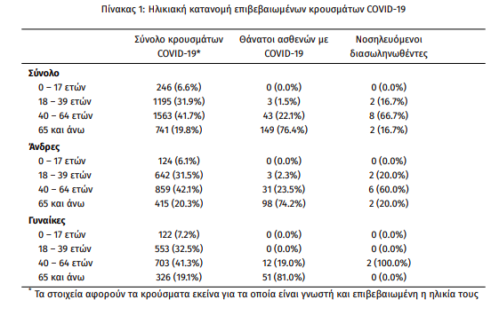 Η ηλικιακή κατανομή των (α) συνολικών κρουσμάτων, (β) των περιστατικών που κατέληξαν σε θάνατο και (γ) των ασθενών που νοσηλεύονται διασωληνωμένοι, είναι η ακόλουθη: