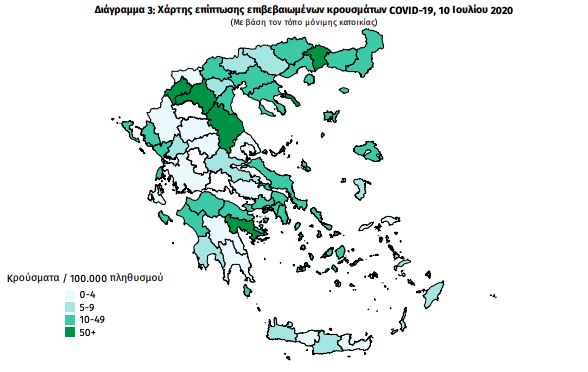 Δείτε τον χάρτη του ΕΟΔΥ με τη γεωγραφική κατανομή των κρουσμάτων: