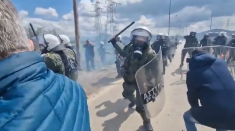 Με δακρυγόνα, κροτίδες κρότου λάμψης και γκλοπ οι αστυνομικοί απωθούν τους διαδηλωτές που συγκεντρώθηκαν έξω από τον Ατμοηλεκτρικό Σταθμό Καρδιάς Πτολεμαΐδας στην Κοζάνη.