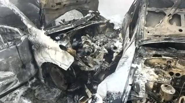 Στις εικόνες καταγράφεται η στιγμή που τα δύο αυτοκίνητα τυλίγονται στις φλόγες, με αποτέλεσμα ένα ζευγάρι να χάσει τη ζωή του.