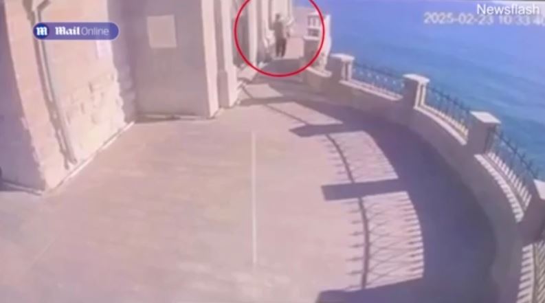 Σε βίντεο από κάμερα ασφαλείας που κατέγραψε την αποτρόπαια σκηνή στην Κριμαία φαίνεται ο 24χρονος να πετάει στο κενό από ύψος 40 μέτρων μία γάτα.