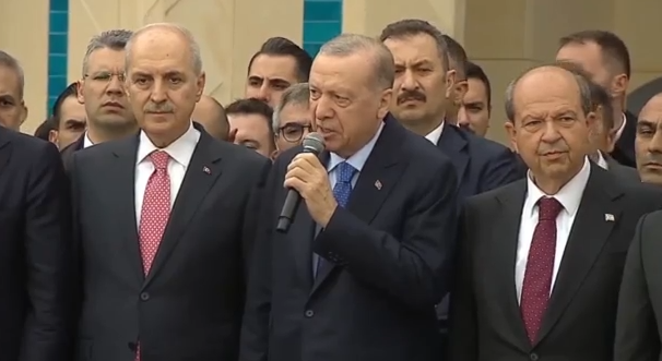 Ο Τούρκος πρόεδρος μόλις 24 ώρες μετά το δείπνο του Έλληνα υπουργού Εξωτερικών Γιώργου Γεραπετρίτη με τον Τούρκο ομόλογό του Χακάν Φιντάν στην Κωνσταντινούπολη, που διεξήχθη σε θετικό κλίμα, προχώρησε στην εγκαινίαση προεδρικού συγκροτήματος στα Κατεχόμενα, επισημαίνοντας την αδιάλλακτη στάση της Άγκυρας για δύο ξεχωριστά κράτη στην Κύπρο, καλώντας τη διεθνή κοινότητα να αναγνωρίσει τα αποτελέσματα της εισβολής και κατοχής, ενώ την ίδια ώρα τόνισε πως δεν πρόκειται να αναγνωρίσει την Κυπριακή Δημοκρατία.