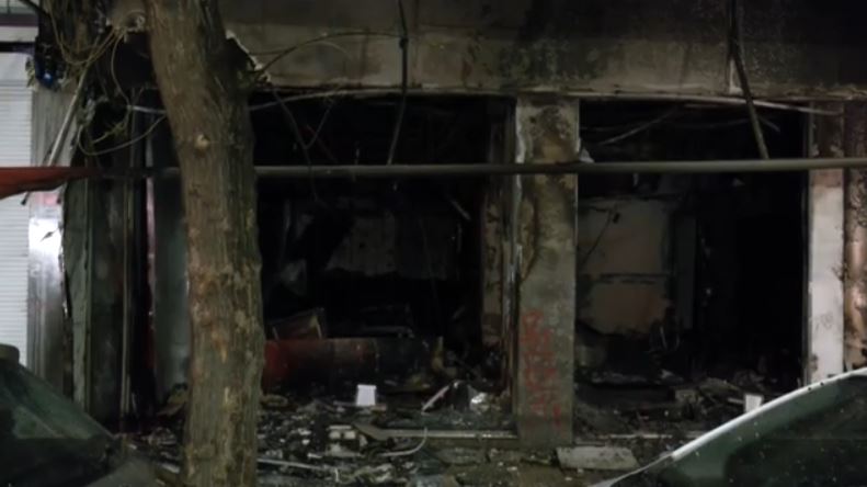 Το κατάστημα έχει καταστραφεί ολοσχερώς ενώ δεν σημειώθηκε κάποιος τραυματισμός.