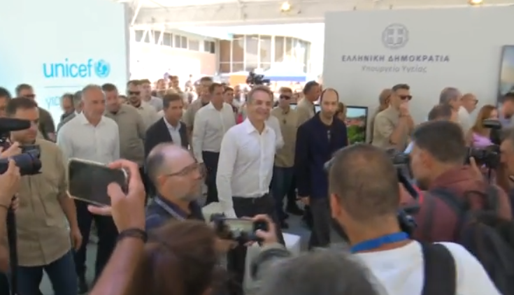 Το πρωί, ο Κυριάκος Μητσοτάκης έκανε την καθιερωμένη βόλτα στα περίπτερα της Διεθνούς Εκθέσεως.