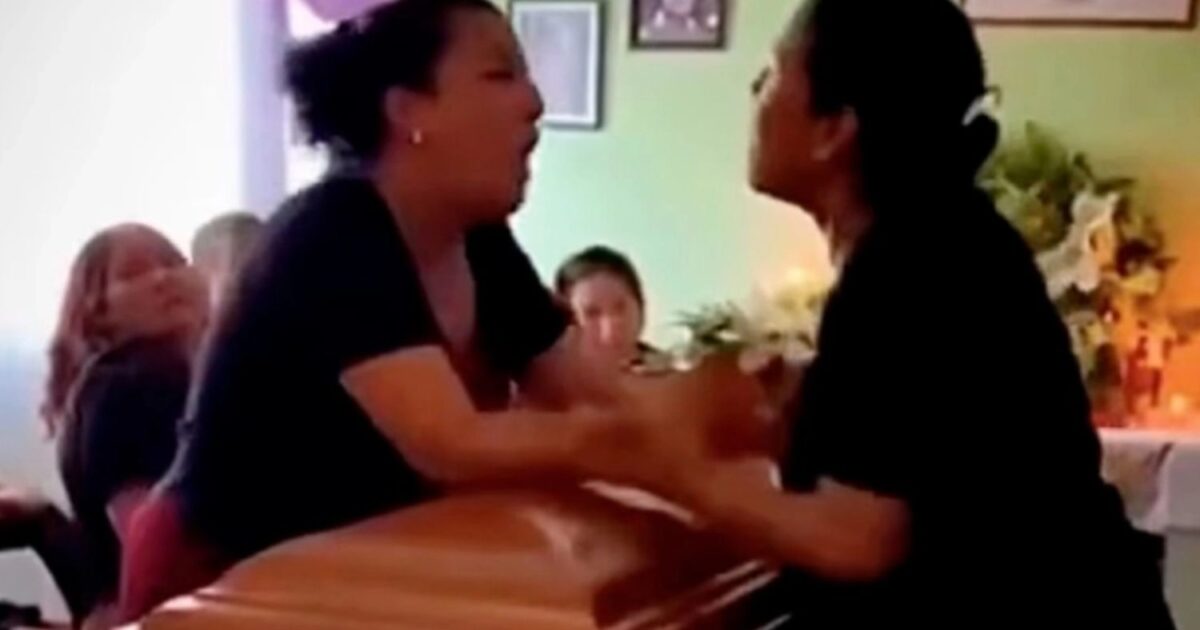 Τότε, μια δεύτερη γυναίκα σηκώθηκε όρθια και φώναξε «ποια είσαι;». Όταν η πρώτη γυναίκα αποκάλυψε ότι είχε σχέση με τον νεκρό, τα πράγματα ξέφυγαν με τις δύο πρωταγωνίστριες να πιάνονται στα χέρια πάνω από το φέρετρο, το οποίο σχεδόν άνοιξε.