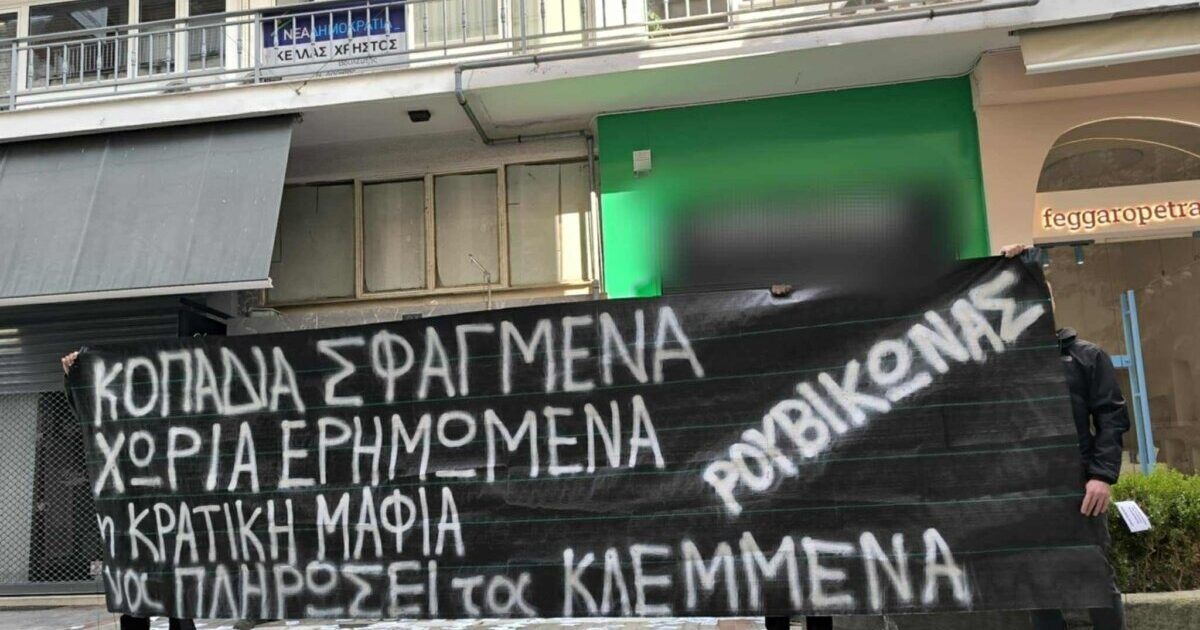 Περίπου 15 μέλη του Ρουβίκωνα, πέταξαν τρικάκια κατά του γραφείου του υφυπουργού Αγροτικής Ανάπτυξης και Τροφίμων Χρήστου Κέλλα στη Λάρισα.