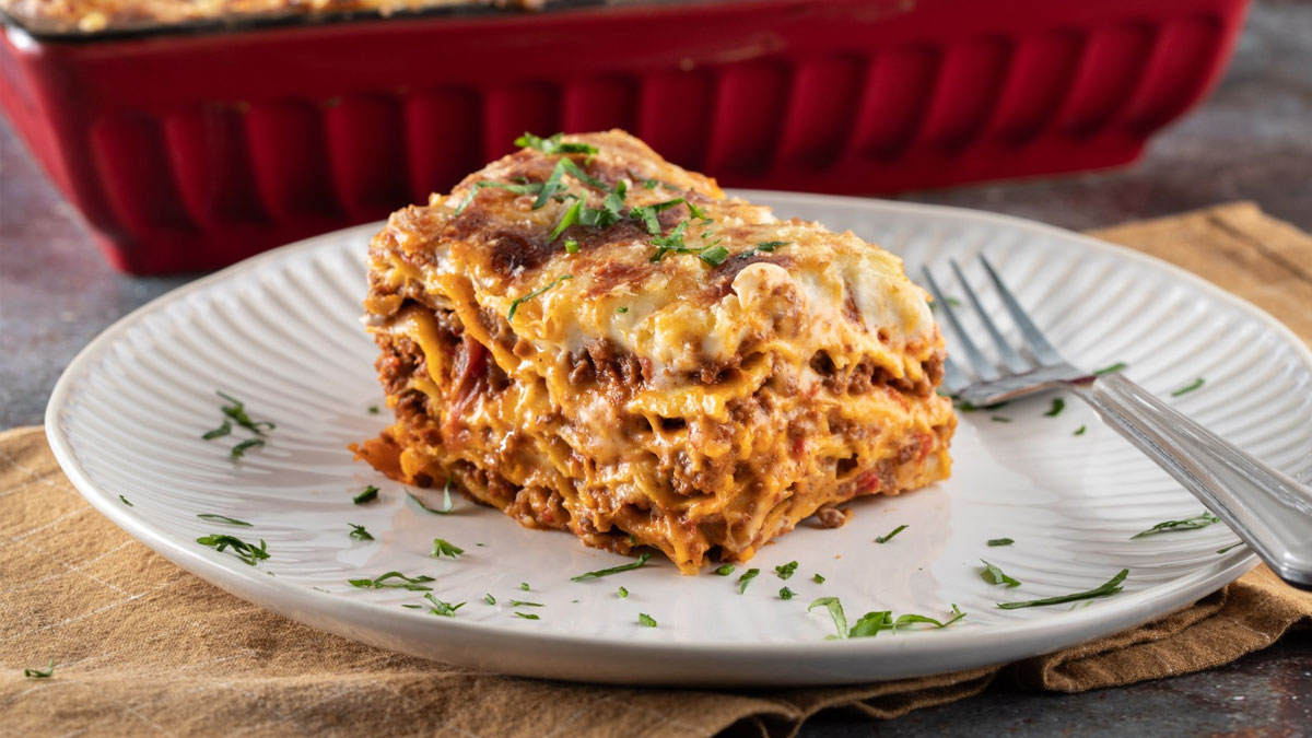 Άφησε το φαγητό να «σταθεί» για 10 λεπτά πριν το κόψεις, ώστε να δέσουν οι στρώσεις και να σερβιριστεί πιο εύκολα.
