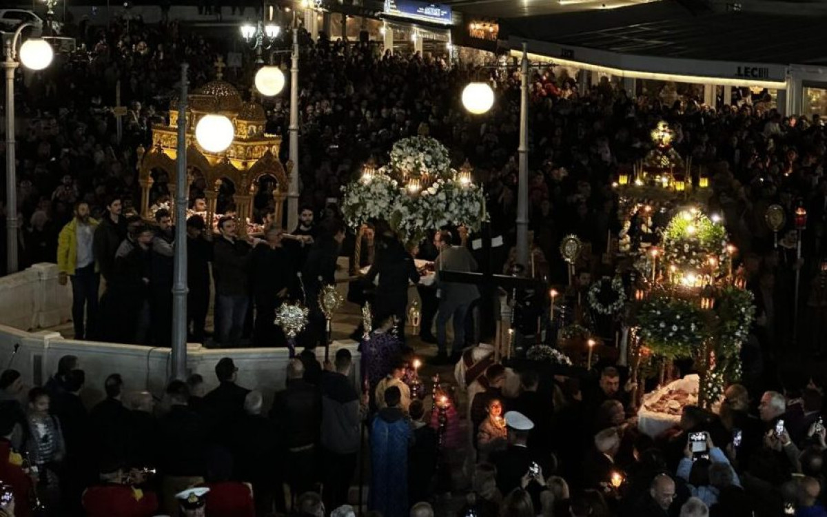 Από νωρίς το βράδυ, οι ενορίες ξεκινούν την περιφορά των Επιταφίων μέσα στα στενά. Οι δρόμοι φωτίζονται από κεριά, τα λουλούδια μοσχοβολούν και οι ψαλμωδίες δημιουργούν μια ατμόσφαιρα που σε ηρεμεί χωρίς να το καταλάβεις. Σιγά σιγά, όλοι κατευθύνονται προς το ίδιο σημείο, την Πλατεία Παντανάσσης, όπου κορυφώνεται το έθιμο.