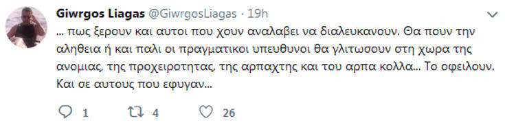 Και οι άνθρωποι ξέρουν. Ξέρουν ποιοι έδιναν λάθος εντολές. Ποιοι παρέλειψαν να δώσουν, ποιοι ολιγωρήσαν, ποιοι έλειπαν, ποιοι έκαναν τα στραβά μάτια όλα αυτά τα χρόνια. Γιατί όλοι γνώριζαν ότι αν κάποια στιγμή συνέβαινε, αυτές θα ταν οι συνέπειες. Το θέμα είναι πως μαθαίνω … πως ξέρουν και αυτοί που χουν αναλάβει να διαλευκάνουν.