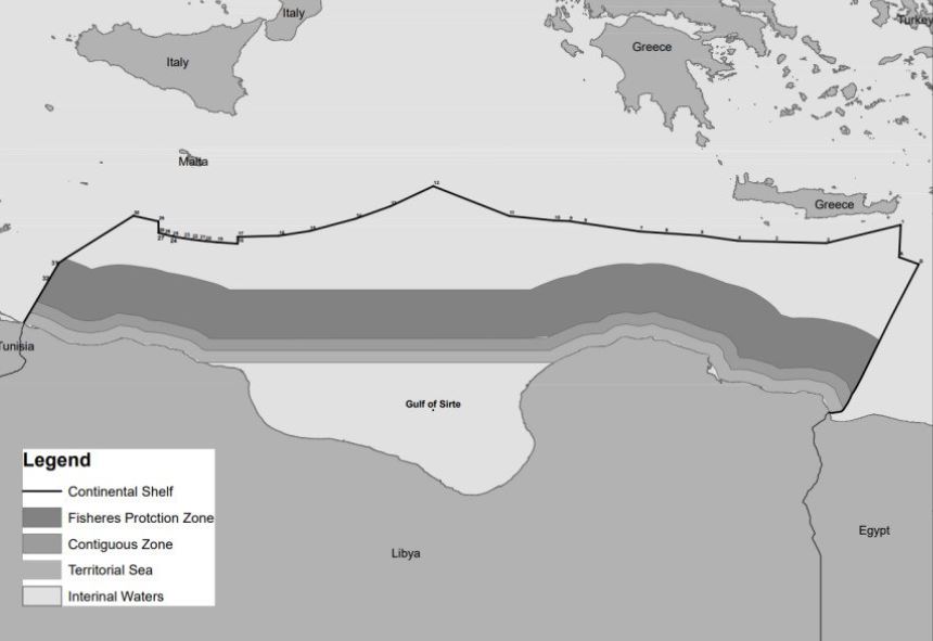 Η κυβέρνηση της Τρίπολης κατέθεσε στον ΟΗΕ χάρτη της υφαλοκρηπίδας της χώρας ο οποίος αγνοεί απόλυτα το δικαίωμα της Κρήτης και των νησιών γενικότερα να έχουν ΑΟΖ.