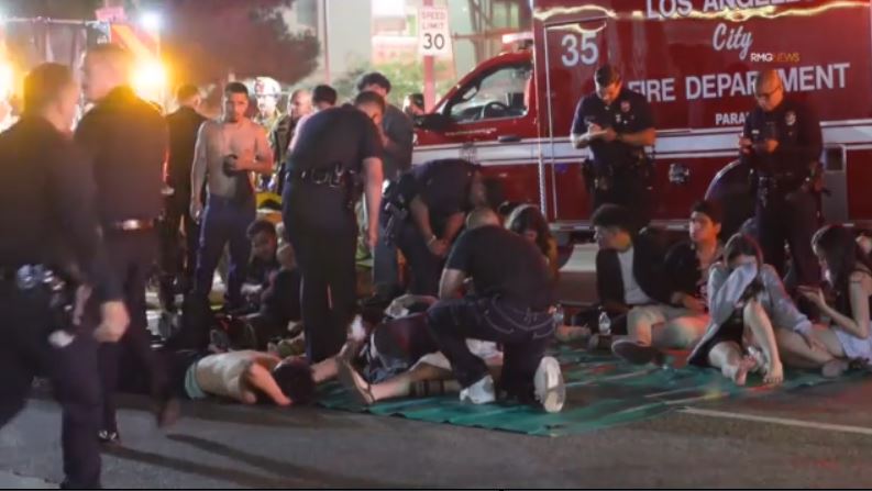 Ένας 29χρονος άντρας έπεσε με το αυτοκίνητό του επάνω σε πλήθος που περίμενε έξω από κλαμπ του Λος Άντζελες και ξυλοκοπήθηκε άσχημα από τους παρευρισκόμενους. Την ώρα του ξυλοδαρμού, ένας άγνωστος άντρας έβγαλε όπλο και τον πυροβόλησε με συνέπεια τώρα να νοσηλεύεται φρουρούμενος.
