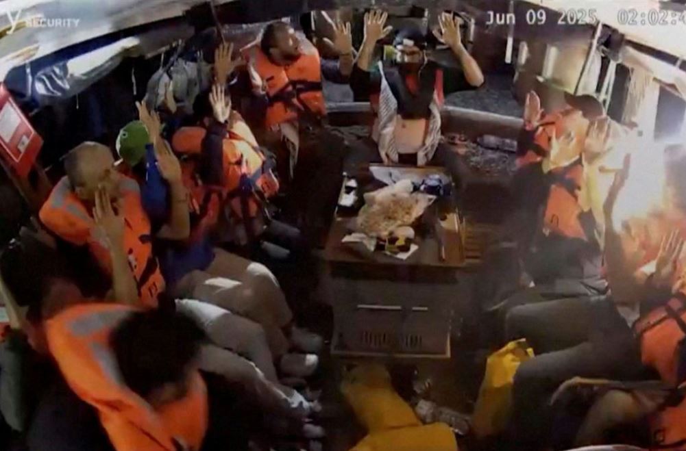 Ισραηλινοί στρατιώτες ανεβαίνουν στο σκάφος Madleen που κατευθυνόταν προς τη Λωρίδα της Γάζας γεμάτο με ανθρωπιστική βοήθεια.