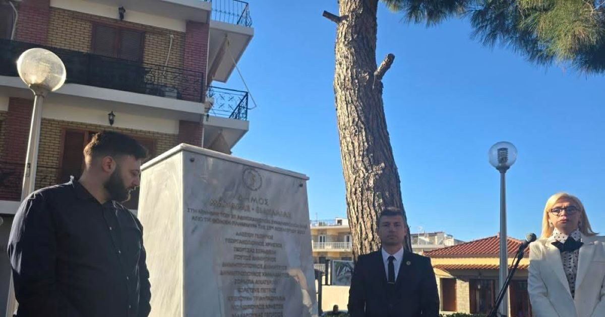 Με βαθιά συγκίνηση πραγματοποιήθηκαν τα αποκαλυπτήρια της επιτύμβιας στήλης που φέρει χαραγμένα τα ονόματα των θυμάτων της πλημμύρας στη Μάνδρα.