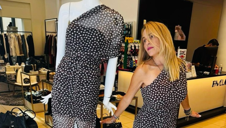 Εξ’ ου και δεν δίστασε να ποστάρει η ίδια τις φωτογραφίες που τη δείχνουν να “κοντράρεται” -στα ίσια θα πούμε εμείς- με μια κούκλα βιτρίνας που φοράει το ίδιο φόρεμα που δοκίμασε κι εκείνη για να πάρει.