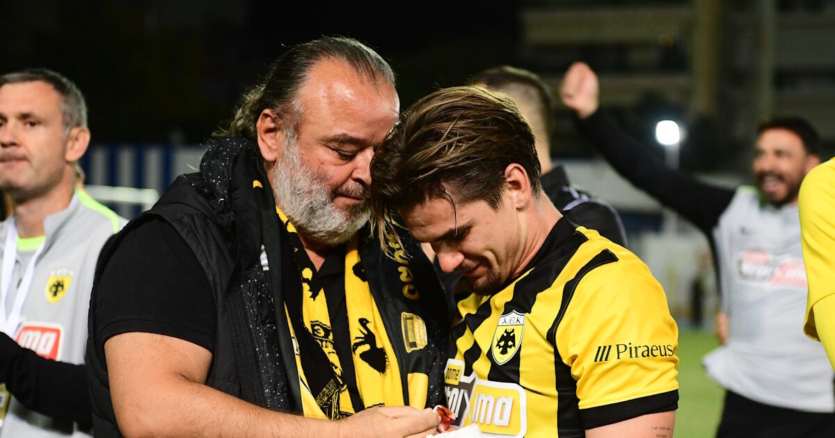 Μετά τη λήξη του αγώνα, ο Μάριος Ηλιόπουλος κατέβηκε στον αγωνιστικό χώρο για να χαιρετήσει και αγκαλιάσει τους παίκτες και ειδικά τους δύο μεγάλους πρωταγωνιστές της νίκης της ΑΕΚ, Λούκα Γιόβιτς και τον Ραζβάν Μάριν.