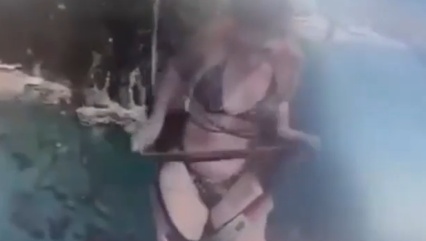 Όταν όμως βρέθηκε ψηλά στον αέρα, ο φόβος φαίνεται να την κατέλαβε, έλυσε το γιλέκο και τη ζώνη ασφαλείας νομίζοντας πως θα απελευθερωθεί.