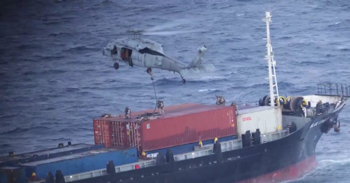 Για το πλοίο μεταφοράς εμπορευματοκιβωτίων που έφερε σημαία από τις Κομόρες, υπήρχαν υποψίες ότι επιχειρούσε να καταπλεύσει σε λιμάνι του Ιράν, παραβιάζοντας τον ναυτικό αποκλεισμό που έχουν επιβάλει οι ΗΠΑ, επισημαίνεται σε μήνυμα της CENTCOM στην πλατφόρμα Χ που συνοδεύεται από βίντεο της επιχείρησης.