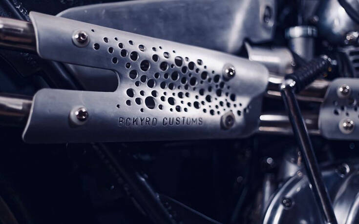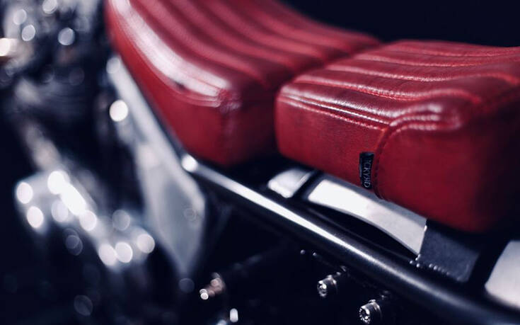 Η Backyard Customs άλλαξε τη σέλα με μια χειροποίητη δερμάτινη από κόκκινο δέρμα, ένα διακοσμητικό μοτίβο που κράτησε και για διάφορα ακόμα σημεία της ανακατασκευής.