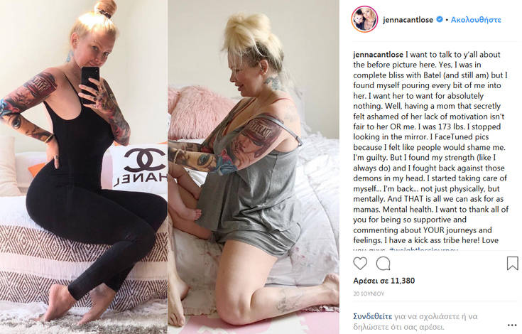 «Σταμάτησα να κοιτάω τον εαυτό μου στον καθρέπτη. Βάζω μόνο φωτογραφίες του προσώπου μου γιατί αισθάνομαι ότι ο κόσμος θα ντρέπεται για εμένα. Είμαι ένοχη», έγραψε κάποια στιγμή τον Ιούνιο για να προσθέσει: «Όμως βρήκα τη δύναμή μου (πάντα τη βρίσκω) και πολέμησα εκείνους τους δαίμονες που υπάρχουν στο κεφάλι μου. Άρχισα να φροντίζω τον εαυτό μου… Επέστρεψα… Όχι μόνο σε φυσική κατάσταση, αλλά και διανοητικά. Και ΑΥΤΟ είναι το μόνο ζητούμενο για εμάς τις μητέρες».
