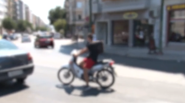 Σε άλλη περίπτωση διανομέας εργάζεται χωρίς κράνος.