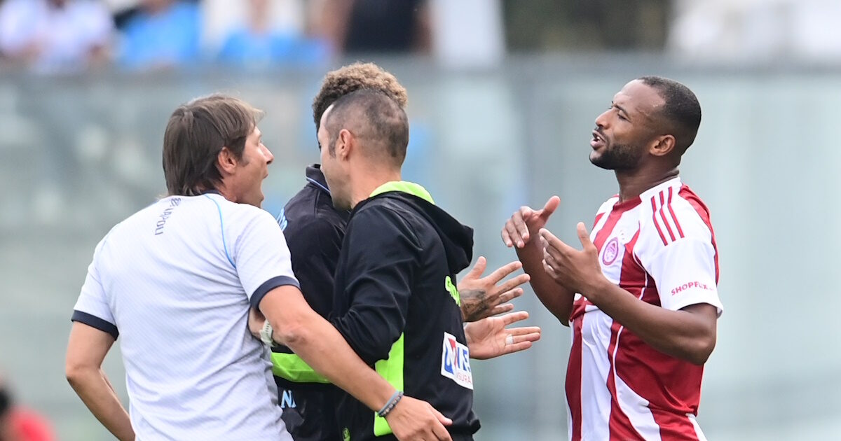 Σε ένα από αυτά, στο 40′, ο Ελ Κααμπί έπεσε πάνω στον Ραχμάνι και με προβολή τον βρήκε άτσαλα στο πόδι, γεγονός που έκανε έξαλλο τον Αντόνιο Κόντε. Ο προπονητής της Νάπολι μπήκε στον αγωνιστικό χώρο για να ζητήσει τον λόγο από τους παίκτες του Ολυμπιακού και τον Μαροκινό επιθετικό, με τα… αίματα να ανάβουν και τους ψυχραιμότερους να μπαίνουν στη μέση.