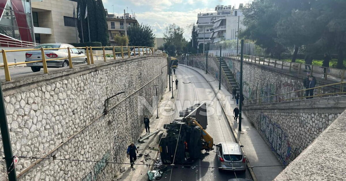 Το τροχαίο στη Νέα Φιλαδέλφεια έγινε όταν ένα γερανοφόρο όχημα έπεσε πάνω σε κολόνα και ντελαπάρισε.