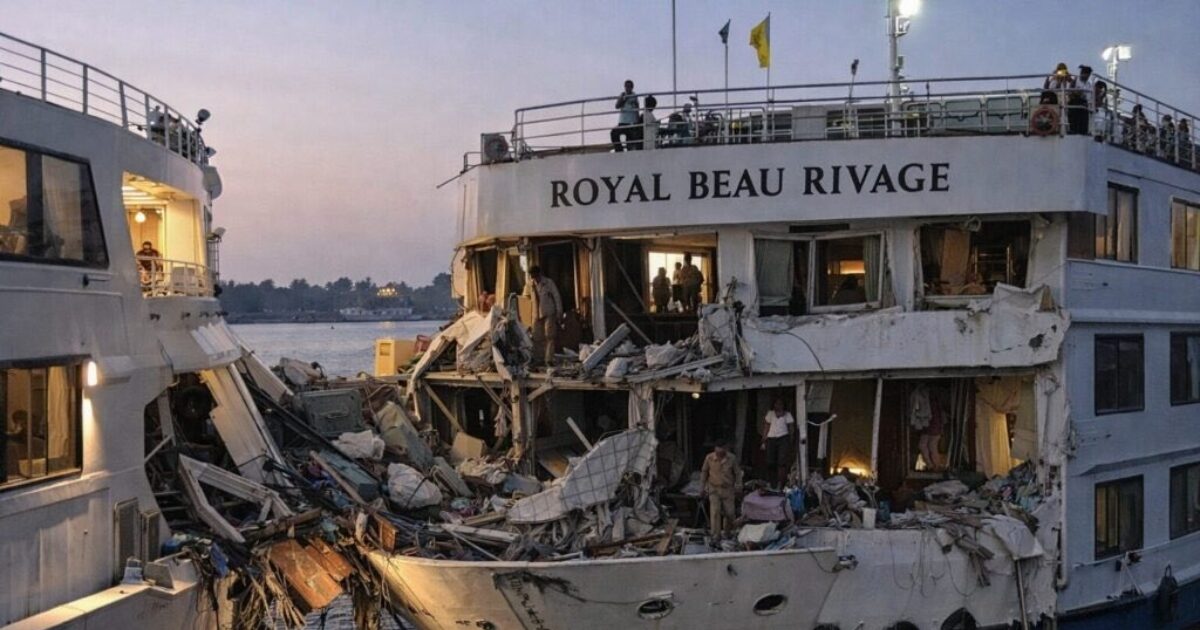 Όπως αναφέρει το unionesarda.it, το ατύχημα σημειώθηκε το απόγευμα της Κυριακής 21.12.2025, περίπου 30 χιλιόμετρα μακριά από το Λούξορ της Αιγύπτου. Από τη σύγκρουση προκλήθηκαν ζημιές σε τέσσερις καμπίνες του κρουαζιερόπλοιου Royal Beau Rivage.