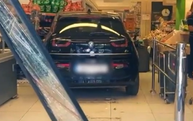 Ένα όχημα κάτω από αδιευκρίνιστες ακόμη συνθήκες έπεσε στην πρόσοψη σούπερ μάρκετ. Μάλιστα, το αυτοκίνητο έφτασε δίπλα στα ταμεία του σούπερ μάρκετ και δίπλα επίσης στις προθήκες των λαχανικών.