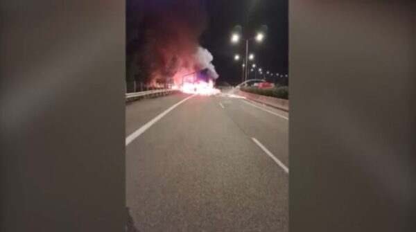 Νταλίκα τυλίχθηκε στις φλόγες στην εθνική οδό – Σώος ο οδηγός