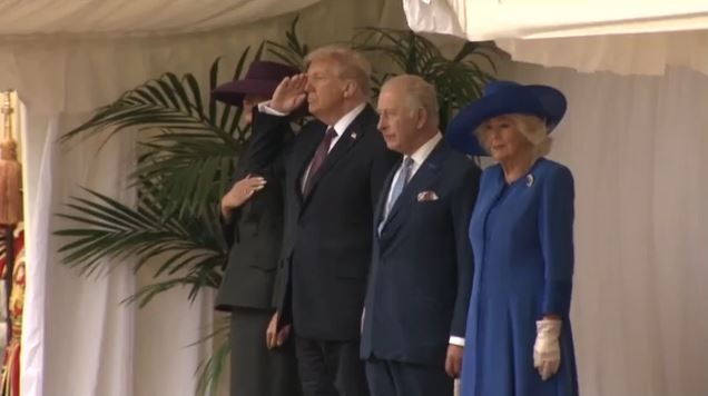 Ο Ντόναλντ Τραμπ έφτασε μαζί με Μελάνια το πρωί της Τετάρτης (17/09) στο Κάστρο του Γουίνδσορ. Ο βασιλιάς Κάρολος Γ’ και η βασίλισσα Καμίλα υποδέχτηκαν τον πρόεδρο των ΗΠΑ και την πρώτη κυρία έξω από το Victoria House, αφού πρώτα τους καλωσόρισαν ο πρίγκιπας και η πριγκίπισσα της Ουαλίας, όταν το ελικόπτερό τους προσγειώθηκε στη βασιλική κατοικία.