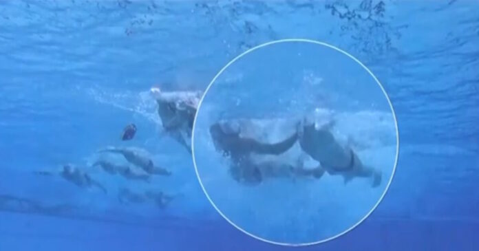 Η Εθνική πόλο ανδρών έμεινε για τέσσερα λεπτά στο δεύτερο οκτάλεπτο, με παίκτη λιγότερο, αφού ο διαιτητής απέβαλε τον Αριστείδη Χαλυβόπουλο, μετά από χρήση του VAR.